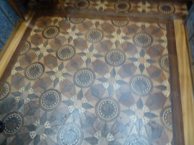 エレベーターの床は寄せ木細工で作られています。