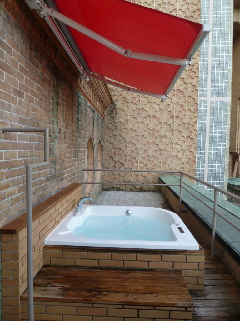 プールの外には水着のままで入れる湯舟もあります。