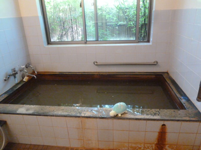 自家源泉の温泉はとろみのある茶色いお湯が特徴です。