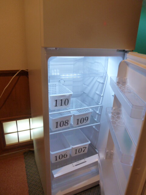 部屋の外の廊下には共用の冷蔵庫があります。