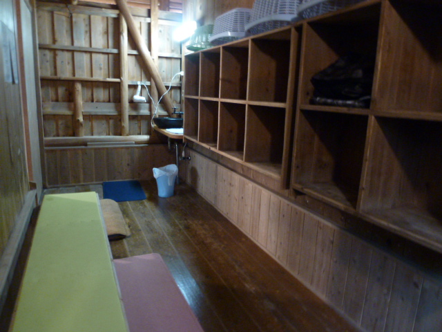 棚と籠だけのシンプルな更衣室です。