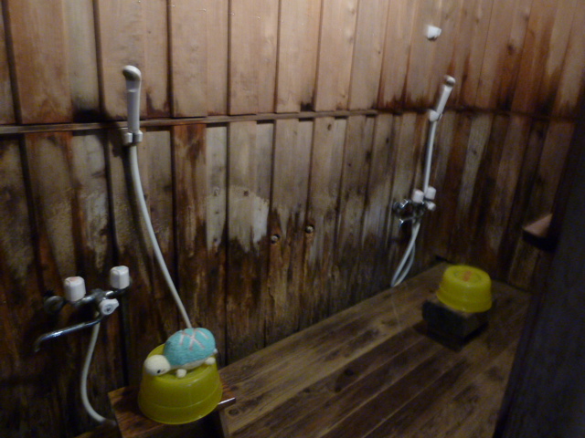 洗い場はシャワーが二つあるだけのシンプルなものです。