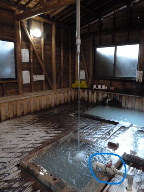 温度調整は 浴槽の区切りに置いてある