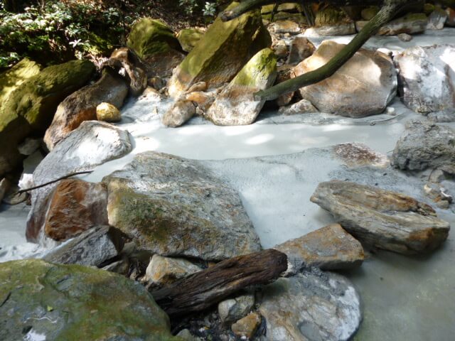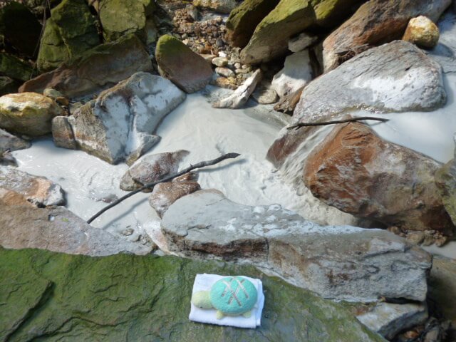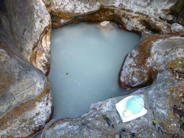 野湯ですので、更衣室等もなく、その辺で着替えます。